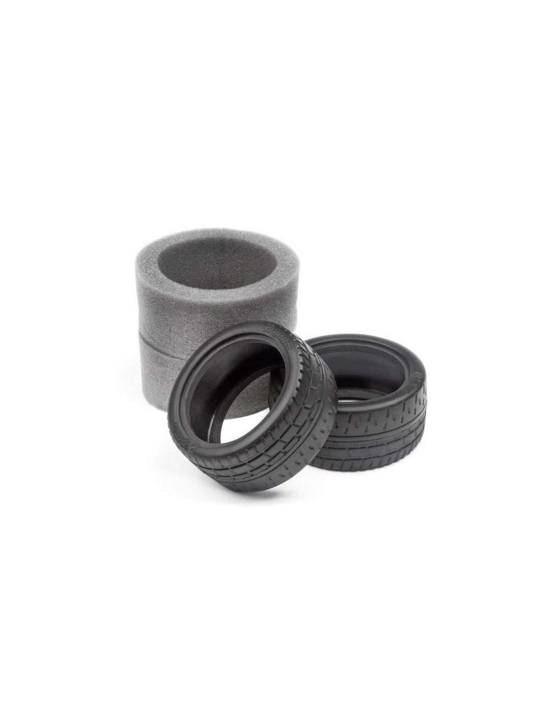 Ensemble HPI de deux larges pneus radial avec insert pour les répliques de jantes Fifteen52 R43 Tarmac bronze (réf. 8700116535 et 8700116536) équipant la RS4 Sport 3 Ford Mustang 1965 Hoonicorn (réf. 8700115990)