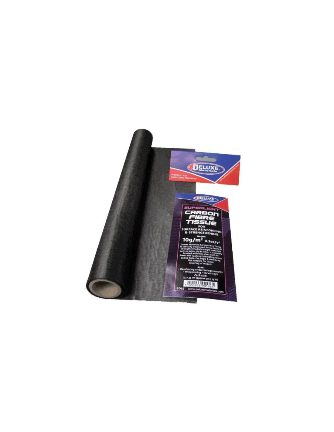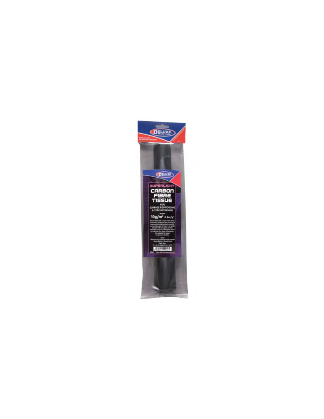 Tissu en carbone spécialement développé (10 g/m) pour le surfaçage et le renforcement de matériaux légers tels que le balsa, le contreplaqué et la mousse.