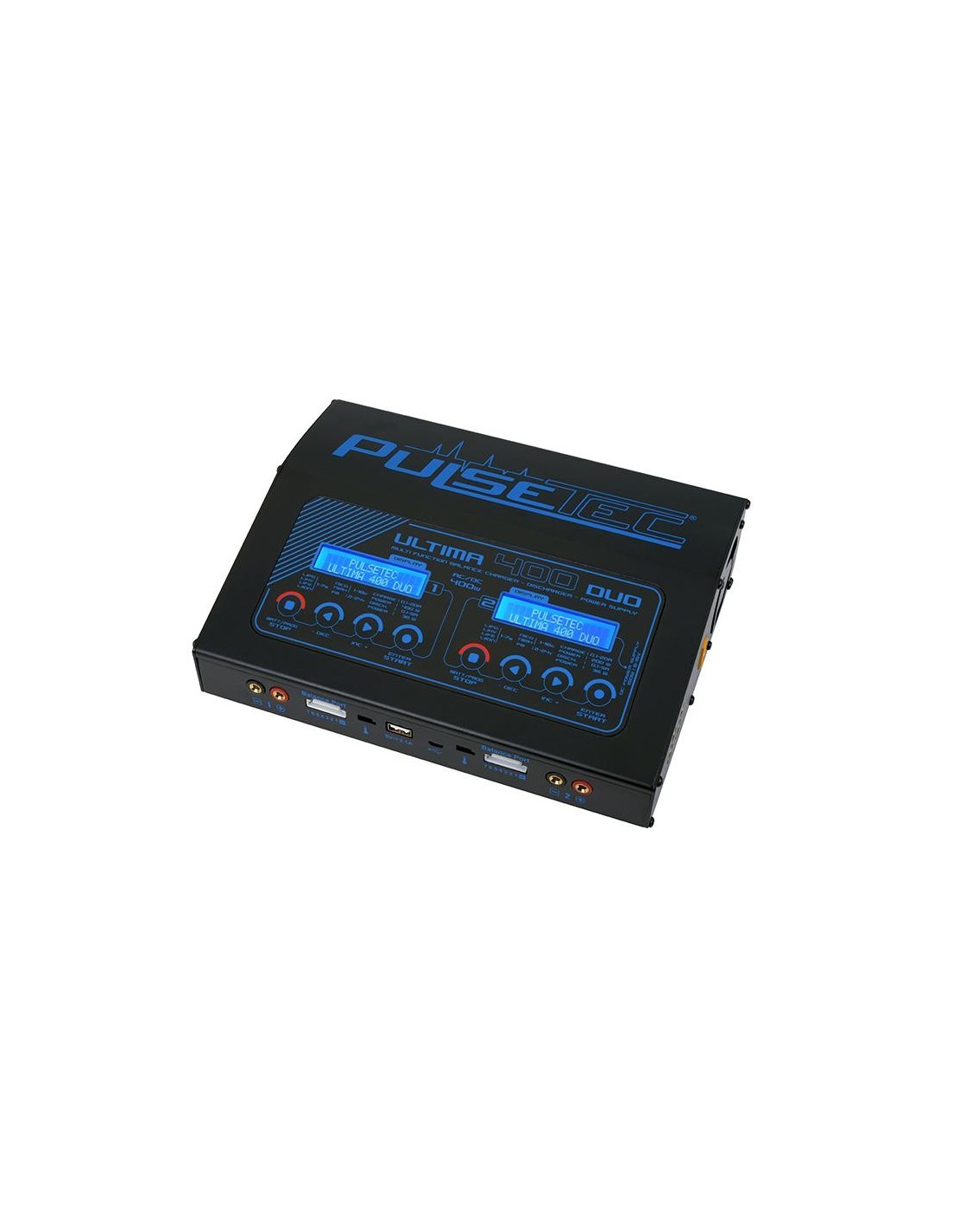 Le courant de charge est réglable de 0,1 à 20,0 A avec une puissance de charge totale maximale de 400 W sur sortie 1 ou 2X200 W. L\'ULTIMA 400 DUO regorge de fonctionnalités incroyables. écrans LCD ultra-lumineux, fonctions de charge / décharge, bloc d\'alimentation réglable 6-15VDC 150W, compteur de batterie IR et bien plus encore.